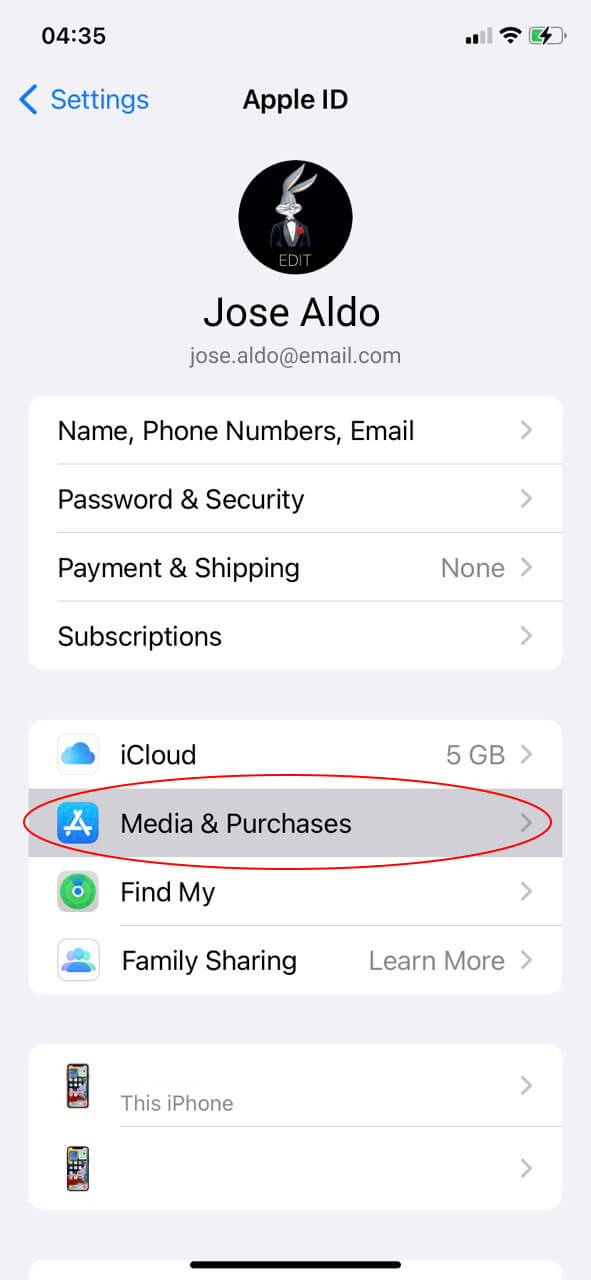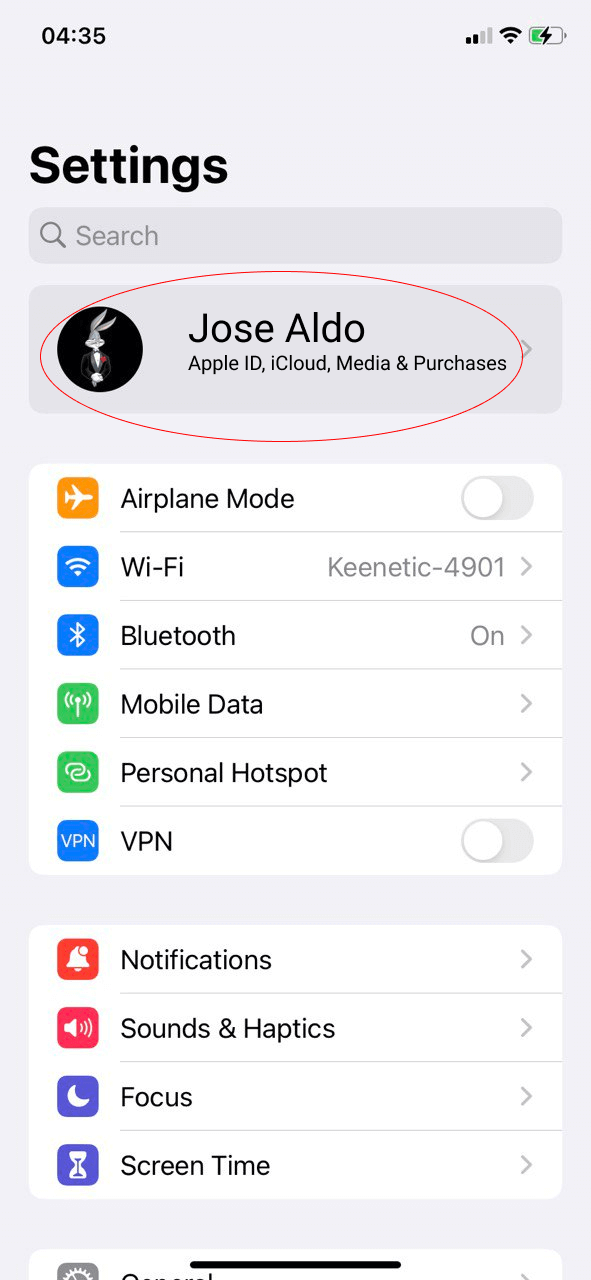 Pulsa en "Apple ID"