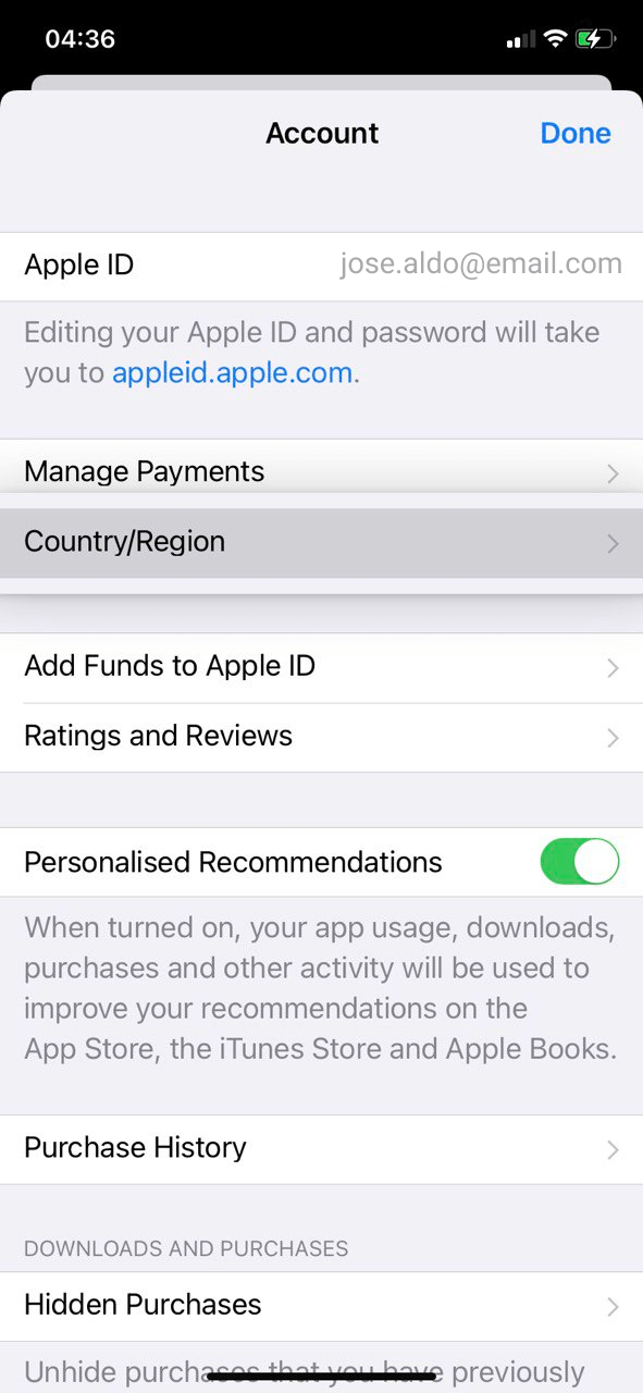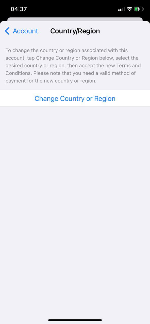 Pulsa "Cambiar país o región"